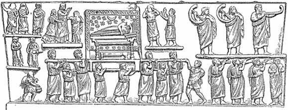 Après cette journée de deuil, le défunt est transporté dans un cortège porté par des hommes ou tiré par des chevaux. Seuls les membres de la famille du défunt pouvaient participer au cortège.
