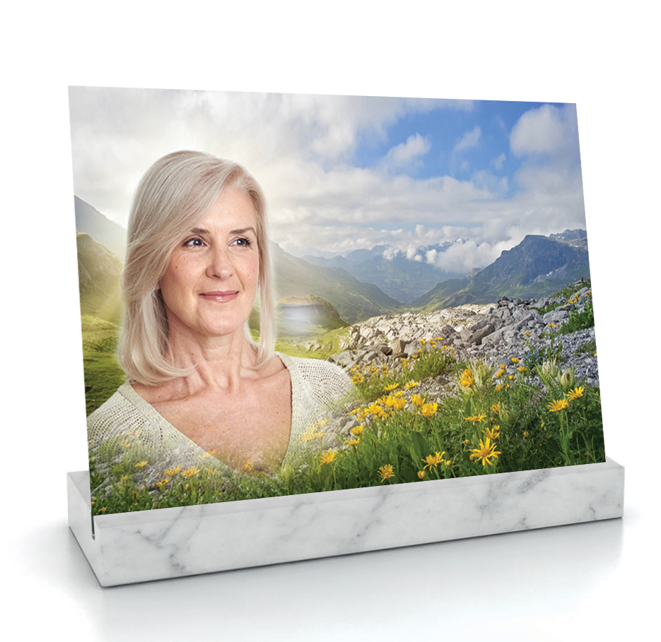 Honorez la mémoire d’un être cher avec notre plaque funéraire raffinée et unique. Fabriquée en France, elle se décline en verre de sécurité (garantie 30 ans) sur socle, en fixation murale ou seule. Vous la personnalisez en 4 étapes simples : modèle, choix du fond ou du motif, texte libre, photo. Impression haute définition qui sublime les couleurs. Fixation possible murale ou sur socle en marbre de Carrare, granit gris de Tarn ou granit noir Impala. Livraison rapide selon vos besoins.