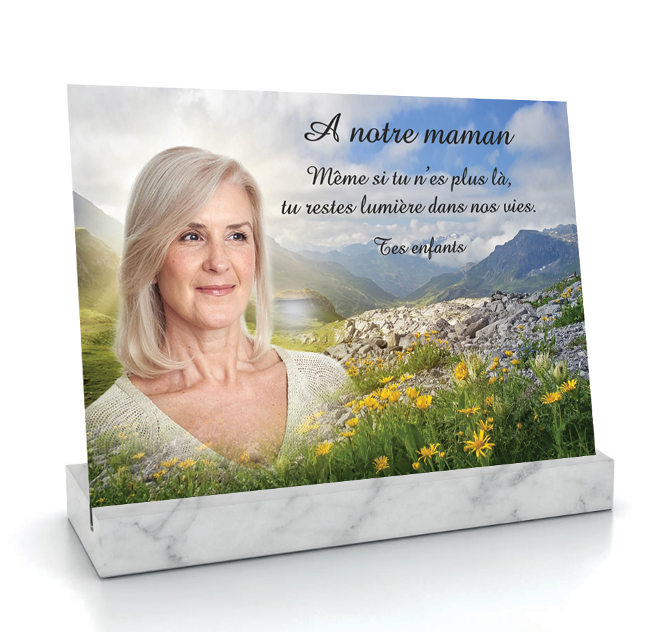 Rendez hommage à vos proches avec une plaque funéraire élégante et unique. Personnalisez-la facilement avec photo et texte. Fabrication française, qualité durable, impression haute définition.
