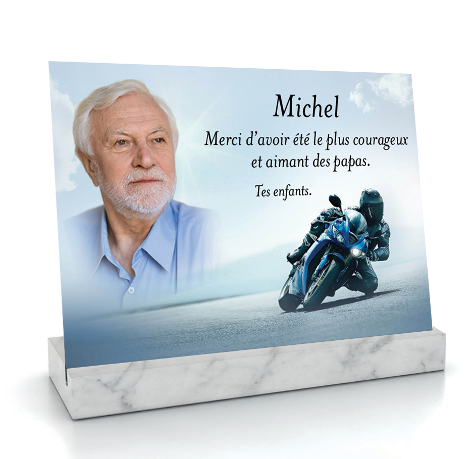 Rendez hommage à vos proches avec une plaque funéraire élégante et unique. Personnalisez-la facilement avec photo et texte. Fabrication française, qualité durable, impression haute définition.